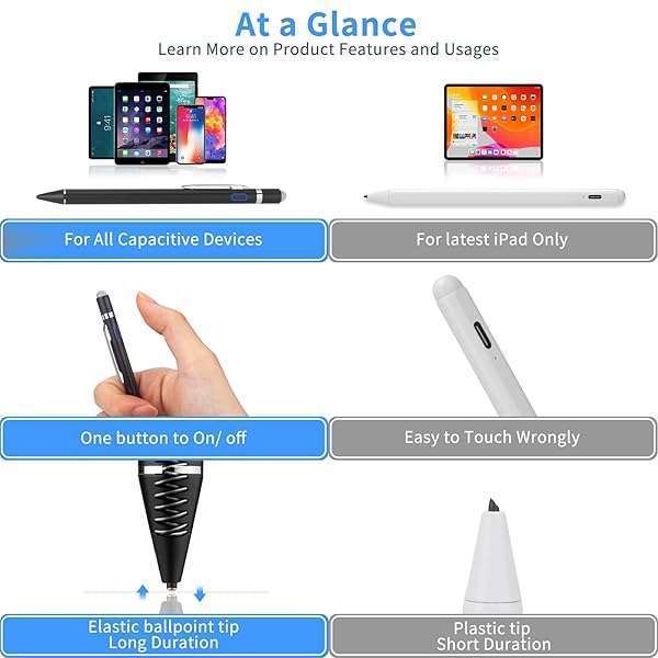 Evach Active Stylus Digital Pen with Ultra Fine Tip Stylus for iPad iPhone Samsung Tablets, Compatible with Apple Pen,Stylus Pen for iPad Pro, Black