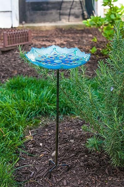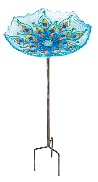 - Evergreen Garden 11" Glass Bird Bath Bowl and Stand for Outdoors | Hand Painted Glass | Embossed Shape | Blue and Green Peacock Feather | 26 Inches Tall offers reliable performance and quality