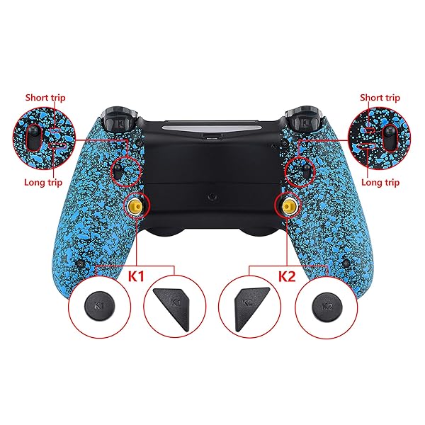 - eXtremeRate Textured Blue Dawn 2.0 FlashShot Trigger Stop Remap Kit for PS4 CUH-ZCT2 Controller, Upgrade Board & Redesigned Back Shell & Back Buttons & Trigger Lock for ps4 Controller JDM 040/050/055 offers reliable performance and quality- Turn your existing controller into a professional eSport elite controller- 2 Ergonomic programable back buttons with FlashShot trigger stop mechanism