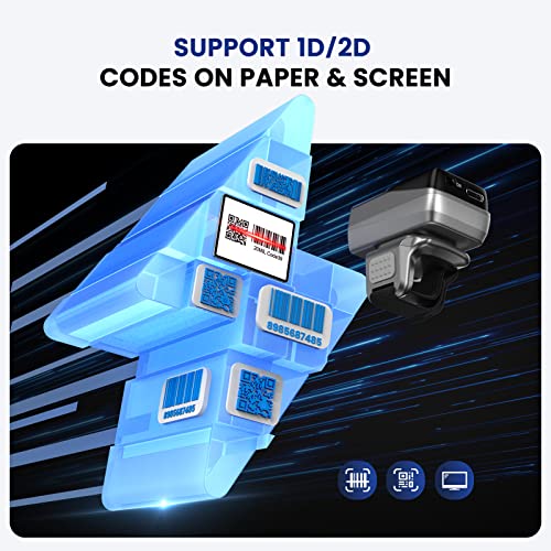 - Eyoyo 2D Bluetooth Ring Barcode Scanner with Screen, Mini Wearable Wireless Finger QR Bar Code Scanner Reader Inventory Compatible with iPad iPhone Android, Support Screen Scan, Left&Right-Handed Use with reliable performance and quality- Ring Scanner With 1" Color Display: The barcode scanner with display empowers the frontline worker with the information they need at the back of the hand saving up to 6 seconds per scan while helping to reduce errors. You can not only get the dat