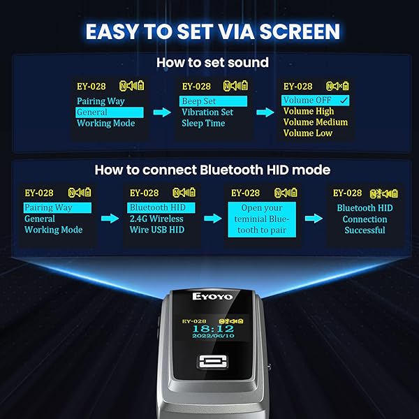 - Eyoyo QR Code Scanner with LCD Display, Mini Portable Bluetooth Barcode Scanner, Wireless 1D 2D Book Bar Code Scanner for Library Classroom Inventory Compatible with iPhone iPad Android iOS POS Laptop with reliable performance and quality- Bright 1" Color Lcd Display, Say Goodbye To User Manual: Unlike an ordinary barcode scanner with a display, you can not only get the date & time, remaining battery, sound on/off, Bluetooth/2.4G connection status information from the screen but a