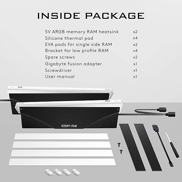 - EZDIY-FAB 5V ARGB Memory RAM Cooler DDR Heatsink for DIY PC Game MOD DDR3 DDR4 (Compatible with Aura Sync,RGB Fusion and Mystic Light Sync)-2 Pack-PI061 offers reliable performance and quality- PI061 ARGB is featured with special-designed light diffuser, letting RGB lights spread out through different angles with more artistic look- Applied on the ordinary RAM without heatsink, adding ARGB light effect to decorate the personalized Gaming Case