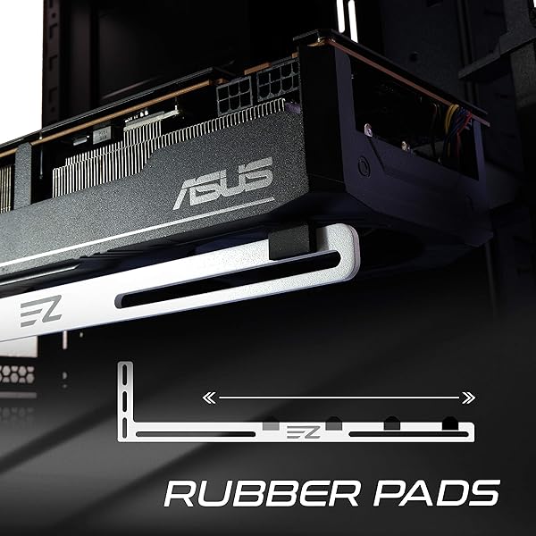- EZDIY-FAB GPU Bracket ,Graphics Card Brace Support,Video Card Holder,GPU Holder for Custom Desktop PC Gaming-3mm Aluminum-White offers reliable performance and quality- Adjustable for different video card weights and sizes- Low-key matt black aesthetic that improves the look of your PC- 3mm Aluminum material prevents sagging and removes stress on motherboard- Doesn't restrict airflow yet maintains rigid structure