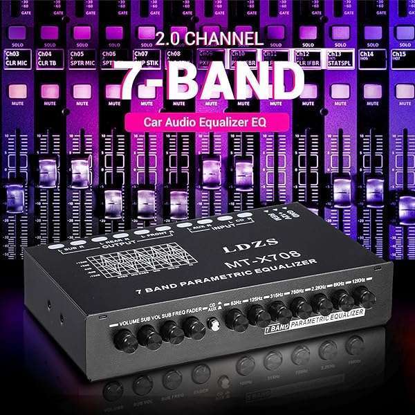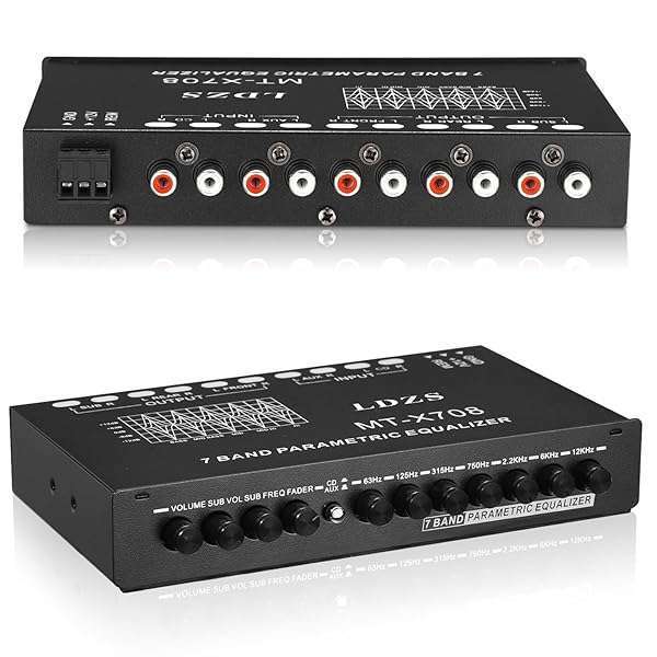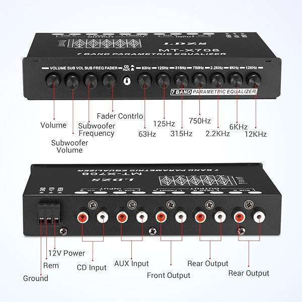 * Facmogu 7-Band Car Audio Equalizer, Adjustable 7 Bands EQ Car Amplifier Graphic Equalizer with CD/AUX Input Select Switch, Front/Rear + Sub Output, for Boat RV RTV Motorcycle Car Stereo Tone Control: 7 equalization bands (63hz * 125hz * 315hz * 750hz * 2.2khz