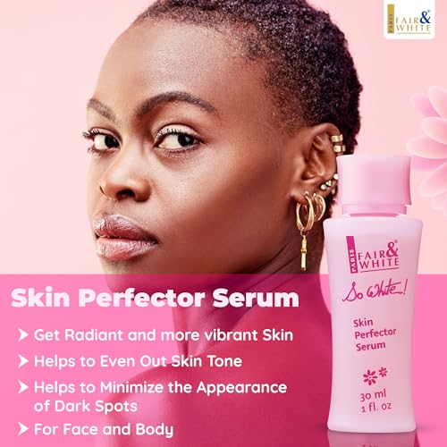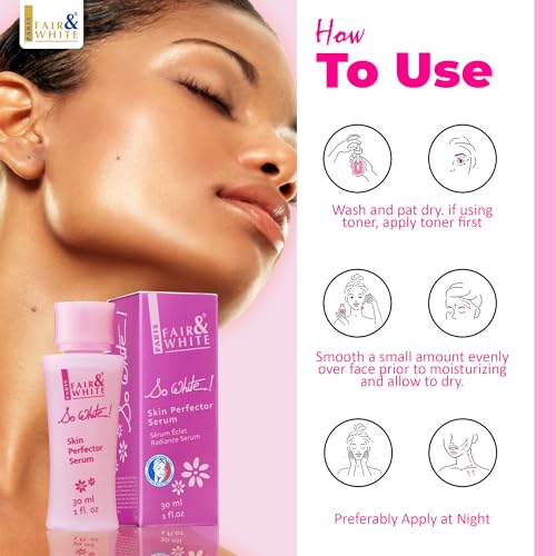 - FAIR & WHITE So White Skin Brightening Serum 30ml - For Face, Elbows Knees, Feet - with Kojic Acid and Castor Oil provides reliable performance and quality- SO WHITE FORMULA: Infused with a unique blend of safe brightening properties and sweet delectable scent, this silky soft, lightweight serum helps improve skin clarity and radiance for an overall he...