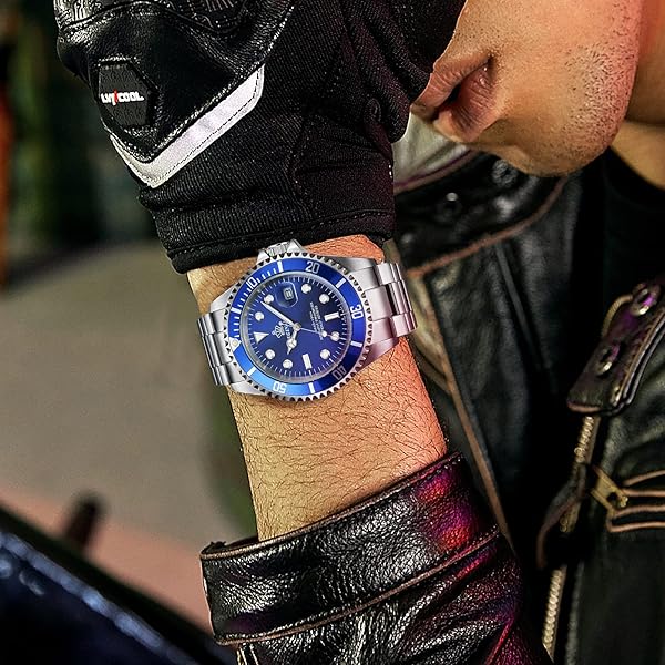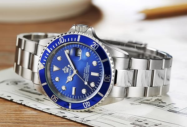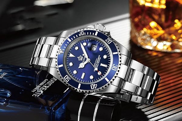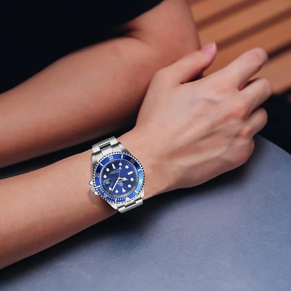 - FANMIS Blue Dial Rotatable Bezel Sapphire Luminous Hand Quartz Mens Silver Stainless Steel Watches offers reliable performance and quality- Round watch featuring unidirectional blue dive bezel with silver-tone trim and logoed dial with luminous hands/markers- 40 mm silver-tone stainless steel case with Sapphire dial window, Stainless steel bracelet with silver-tone center links and foldover clasp with safety closure