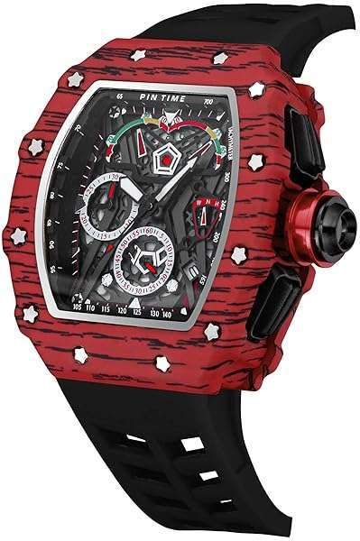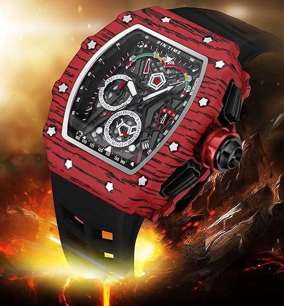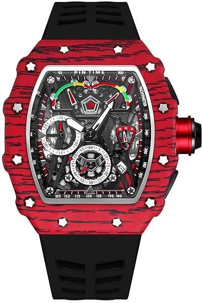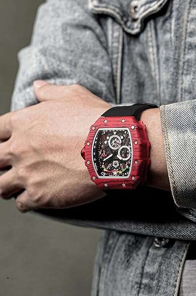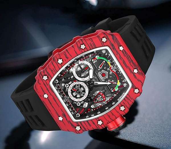 - Mens Luxury Tonneau Square Watches Analog Punk Chronograph Unique Sports Wrist Watch Japanese Movement Luminous Design with Rubber Band (X Red Black) provides reliable performance and quality- Mens Skeleton Watches: The barrel-shaped design of the watch is based on the arc geometry that fits the wrist best, and is more comfortable when used. The skeleton dial allowing you to see the fash...