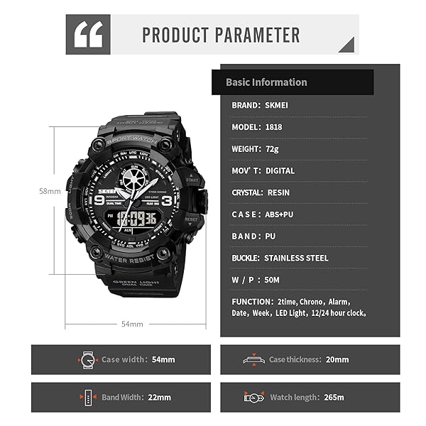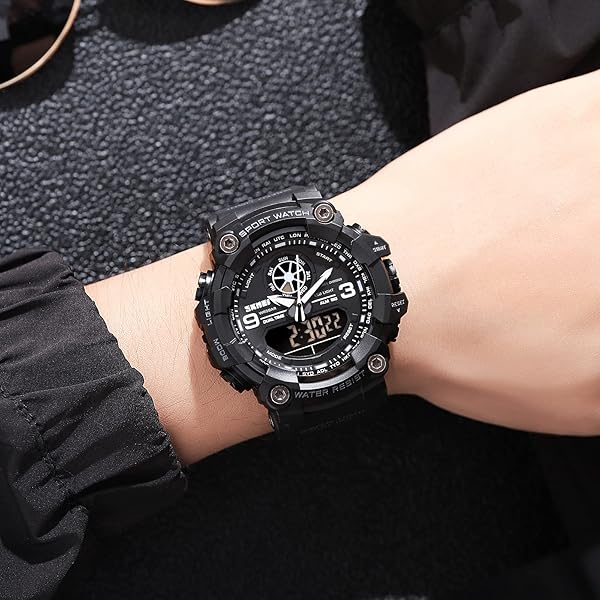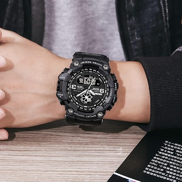 - Mens Analog Digital Dual Display Sports Watches Military Multifunctional 50M Waterproof LED Watch with Alarm Stopwatch Backlight 12H/24H Outdoor Running Swimming (Black) offers reliable performance and quality- 164FT WATERPROOF: 164 ft waterproof (50 M) - 5ATM water resistant. NOTE: please DO NOT press any buttons in the water