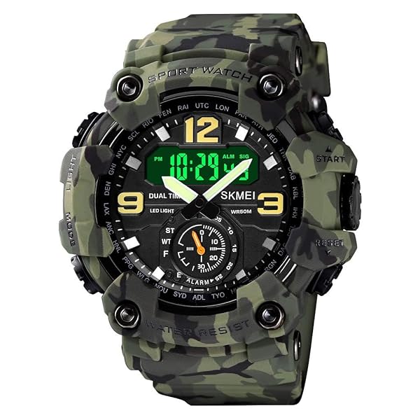 FANMIS Mens Analog Digital Dual Display Sports Watch Military Waterproof LED Alarm Stopwatch for Outdoor Running Swimming Y Green Camouflage