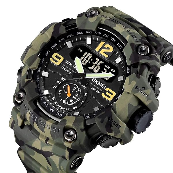 - FANMIS Mens Analog Digital Dual Display Sports Watches Military Multifunctional 50M Waterproof LED Watch with Alarm Stopwatch Backlight 12H/24H Outdoor Running Swimming (Y Green Camouflage) offers reliable performance and quality- 164FT WATERPROOF: 164 ft waterproof (50 M) - 5ATM water resistant. NOTE: please DO NOT press any buttons in the water