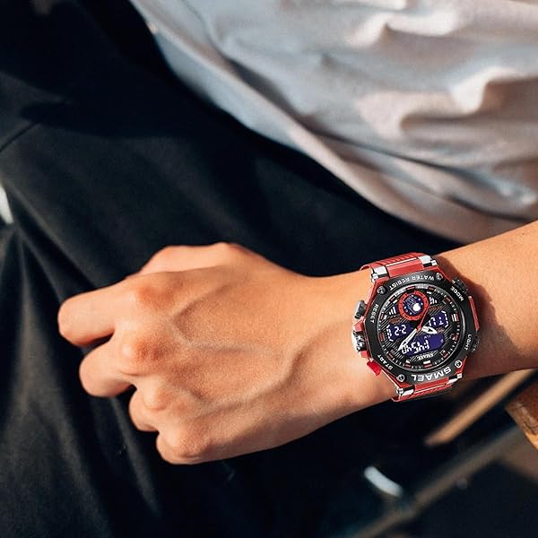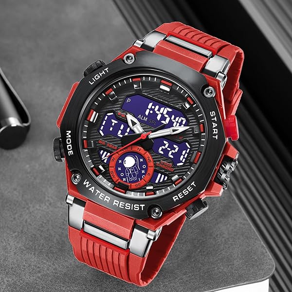 - FANMIS Mens Digital Sports Watches Multifunctional Large Military 50M Waterproof LED Alarm Backlight Watch (Red) offers reliable performance and quality- MULTIFUNCTIONAL: Backlight with Afterglow, Large Face, Daily Alarm, Lap Timer, Second Stopwatch, Auto Calendar, shock resistant, waterproof. Perfect for sport and daily use- Digital watch: Fashionable sporty dial design, military style outlook. Large Dial and numbers with light, show time clear in the dark