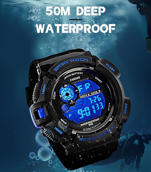 - FANMIS Mens Military Multifunction Digital LED Watch Electronic Waterproof Alarm Quartz Sports Watch (Blue) offers reliable performance and quality- MULTI-FUNCTIONAL: Calendar Month / Day / Date, Alarm, Water Resistant, LED Display, Back Light, Shock Resistant, Stop Watch. What you waiting for? This a great value watch you don't want to miss