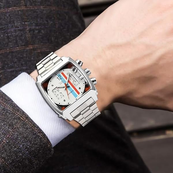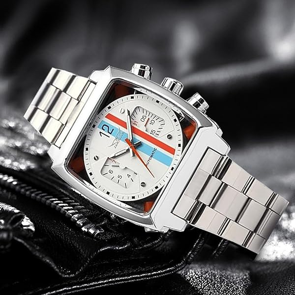 - FANMIS Mens Outdoor Sports Automatic Mechanical Analog Date Day Army Silver Stainless Steel Wrist Watch offers reliable performance and quality- Classic Style Men Mechanical wristwatch.Stainless steel Watch Strap both comfortable and smooth, And you Do not worry about the size of the watchband, wear freely- Oblong(square) Case White Dial with Stripes.Day and Date Sub Dials with Luminous Hands