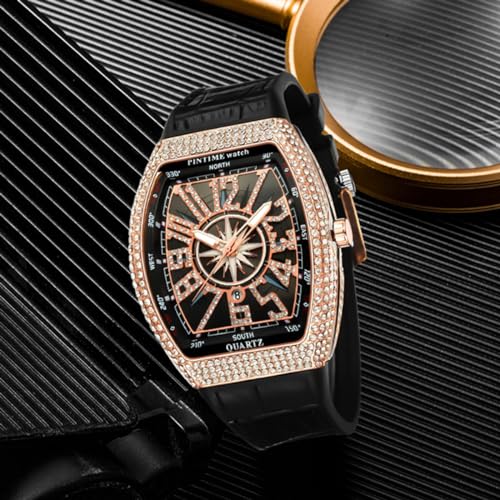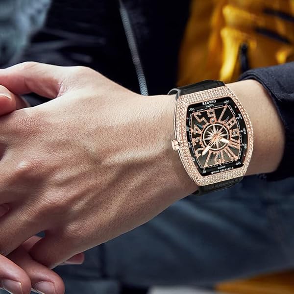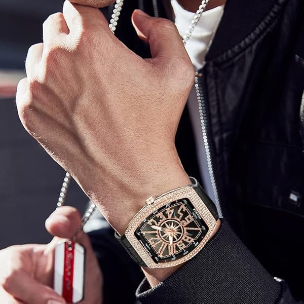 - Mens Skull Big Face Watches Rectangle Punk Diamond Dial Leather Strap Calendar Quartz Sports Wrist Watch (Rose Black) provides reliable performance and quality- Bling Watches: Shiny Diamond decorate strap and Watch, full rhinestone is bling under the light, great elegant appearance without the expensive price tag to match. Wear it in your hand, it is very ...