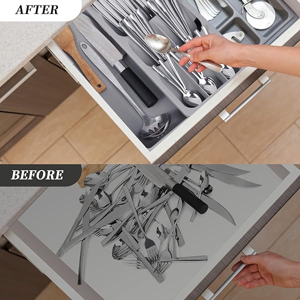 Faridabio Expandable Silverware Organizer Tray for Kitchen Drawers - Perfect Cutlery Storage for Spoons & Forks