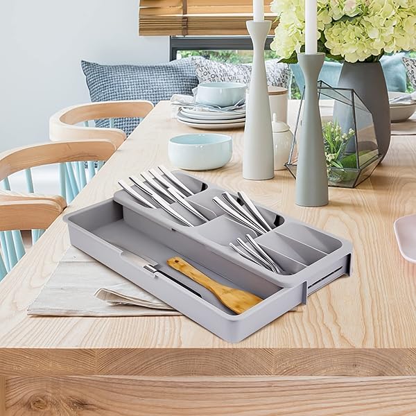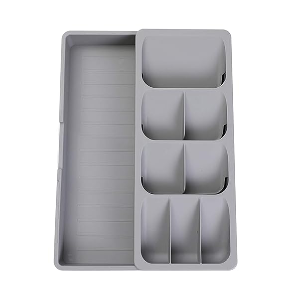 * Faridabio Silverware Organizer Storage Tray,Cutlery Expandable Organizer for Kitchen Drawer Holding Flatware Spoons Forks: faridabio kitchen drawer cutlery storage box made of safe durable plastic * The utensils organizer size:15.8 x 6.5 x 2.2 * Double row five angled compartments with one more small box,for different cutlery * Cutlery organizer make tableware more beautifully placed ,keep your kitchen drawers organised * Care & UseWash and dry by hand