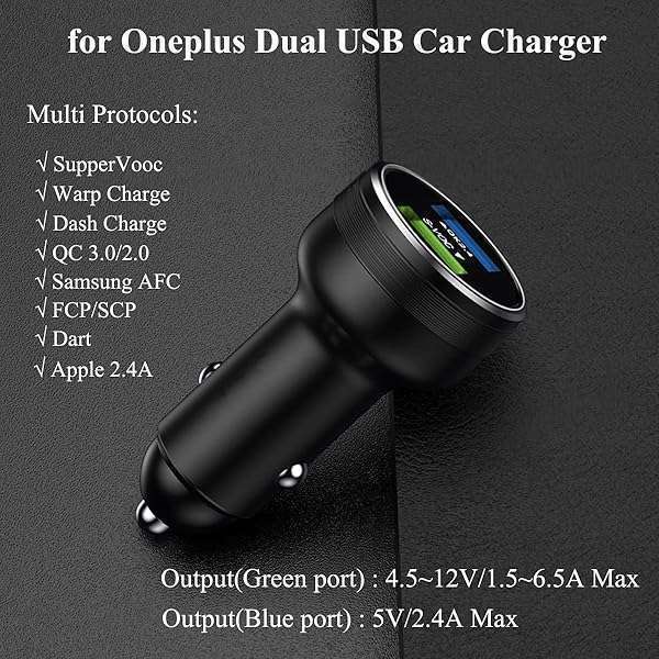 - 30W 65W Car Charger Compatible for Oneplus 13 12 13R 12R 11 10 9 Pro Open Pad 9R 8T 10T 8 7T Nord 3 4 N20 N300 N10 N100 N200 N30 SE 5G Car Charge Fast for One Plus 7 6T 6 Black provides reliable pe...- Supports super fast charging 65W/30W: This upgraded Compatible for Oneplus car charger supports ultra rapid charging for one plus phones. The green quick charge port can reach 5V/4~6.5A, the blue p...