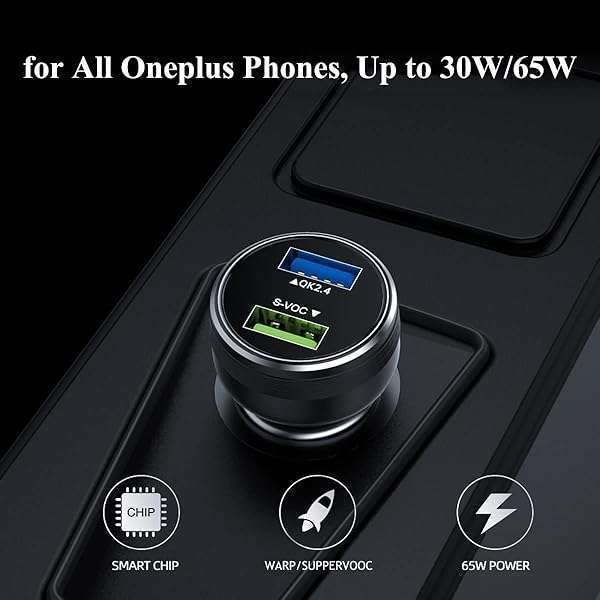 Fast Charging Warp Charge 30W & 65W Car Charger for OnePlus 12, 11, 10, 9 Pro, Nord & More - Supervooc Dash Charge