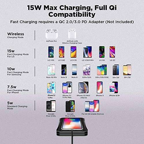 * Wireless Charger Car Charging Pad Non-slip 15W 10W 7.5W Fast Charger Mount Adapter for iPhone 13 12 Pro Max 11 8 Plus X XR Xs LG G8 Samsung Note 20 10 Galaxy S10 S20 S21 S22 S23 S24 S25 Android Phones: wireless phone charger qi charging pad for iphone & android cellphones * Work flawlessly with normal or quick charge speed: 15W for LG G7 ThinQ G7+ G8 G8S G8X V30 V30S V35 V50 V50S V40 * Samsung Galaxy S25 S24 S23 S22 S21 S20 S20+ Note 20 * 10W for S10 S10+ S10E S9 S9+ S8+ S8 Active S7 edge S6