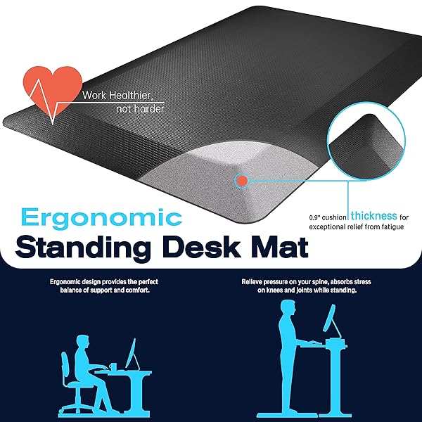 - FEATOL Anti Fatigue Mat for Standing, 9/10 Extra Thick Ergonomic Standing Desk Mat, Comfort & Durable Memory Foam Standing Mat at Home,Office All Day (20" x 32", Black, 2PC) offers reliable performance and quality