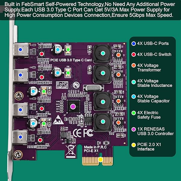 - FebSmart 4X 5Gbps USB-C Ports PCI Express USB 3.0 Expansion Card for Windows 11, 10, 8.x, 7, Vista, XP Desktop PCs, Built in Self-Powered Technology, No Need Additional Power Supply (FS-U304C-Pro) offers reliable performance and quality