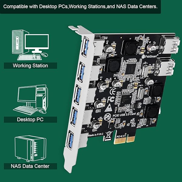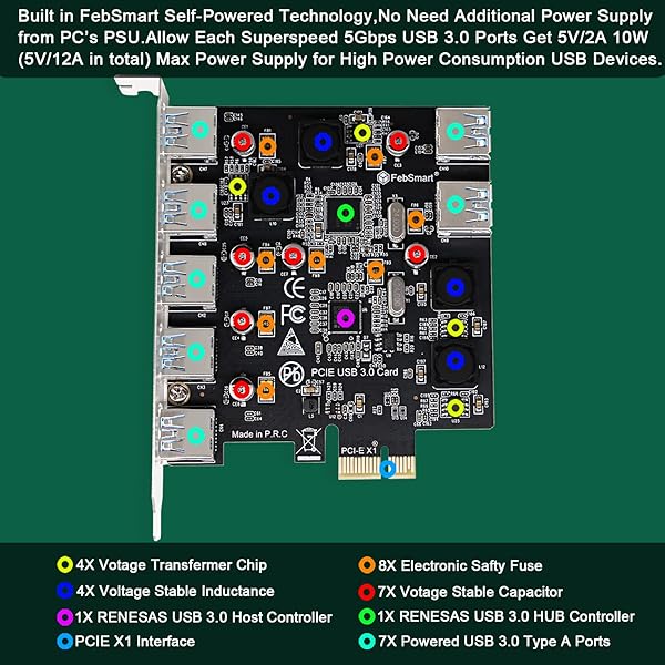 - FebSmart 7-Ports Superspeed 5Gbps PCIE USB 3.0 Expansion Card for Windows 11, 10, 8.x, 7, Vista, XP Desktop PCs, Built in FebSmart Self-Powered Technology, No Need Additional Power Supply (FS-U7-Pro) offers reliable performance and quality