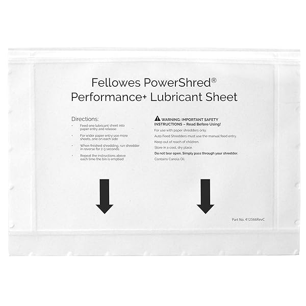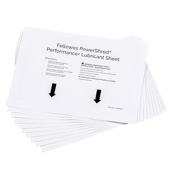 - Fellowes Powershred Performance Paper Shredder Lubricant Sheets with Paper Shredder Oil Lubricant for Cross-Cut and Micro-Cut Paper Shredders, 6 x 8.50 x 0.031 Inch, 10-Pack with reliable performance and quality- Effortless Maintenance: Simply feed one lubricant sheet into the shredder as you would a piece of paper- Optimizes Performance and Lifespan: Lubricating at recommended intervals maximizes performance, slows blade wear and extends shredder life- Prevent Jams: