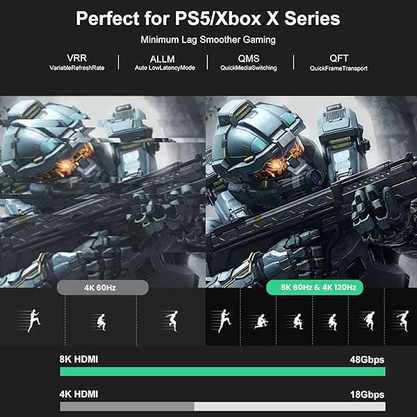 - FIBBR 8K Fiber Optic HDMI Cable 15ft, 48Gbps High-Speed HDMI 2.1 Cable 8K@60Hz 4K@120Hz Dynamic HDR/eARC/HDCP 2.3, Ultra HD Directional HDMI Cord Compatible with LG Samsung Sony TV /PS5/Blu-ray pro...- High Speed Fiber HDMI 2.1 CableHDMI 2.1 cable supports 48Gbps mass-capacity bandwidth. Fiber optic hdmi cable achieves greater bandwidth and faster speed, less signal attenuation, better interferen...