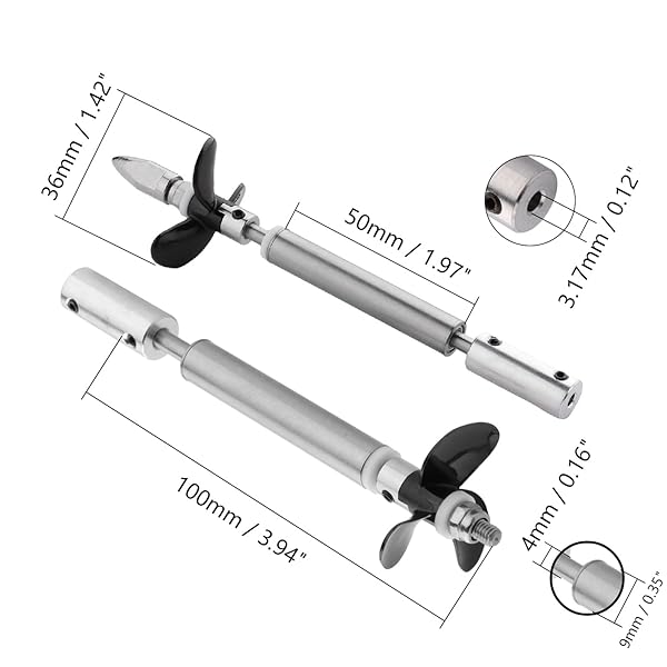 - Fielect Drive Shaft w Propeller and Universal Joint for RC Boat, L100mm Shaft, L50mm Sleeve, D36mm Propeller, Fit for 3.17mm Motor Shaft offers reliable performance and quality- Parameters- Shaft length: 10cm/3.9"; Shaft sleeve length: 5cm/1.95"; Propeller size: 36mm/1.40"; Suit for motor shaft diameter: 3.17mm/0.12"- High Quality- RC boat propeller shaft kit is made of stainless steel,corrosion-resistant,wear-resistant and good sealing