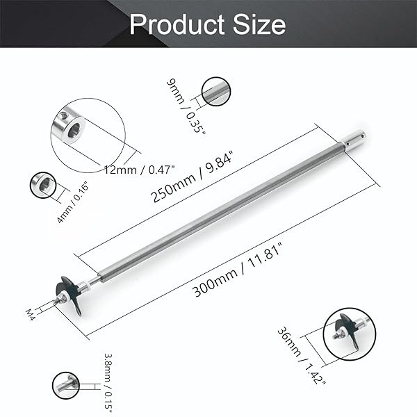 - Fielect Drive Shaft w Propeller and Universal Joint for RC Boat, L300mm Shaft, L250mm Sleeve, D36mm Propeller, Fit for 4mm Motor Shaft offers reliable performance and quality- Parameters- Shaft length: 30cm/11.7"; Shaft sleeve length: 25cm/9.75"; Propeller size: 36mm/1.40"; Suit for motor shaft diameter: 4mm/0.16"- High Quality- RC boat propeller shaft kit is made of stainless steel,corrosion-resistant,wear-resistant and good sealing