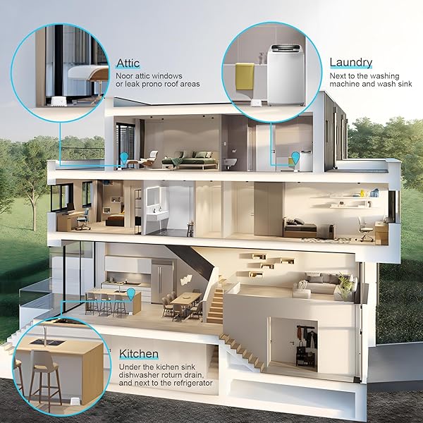 - Filotimo Smart Water Leak Detectors, WiFi Water Sensore Alarm with Alerts and App Remote Notifications, Leak Detectors for Home, Basement, Kitchen, Laundry, Bathroom offers reliable performance and quality- Compact & Versatile: This water leak detector's incredibly small size allows it to fit under appliances and in tight spaces where leaks might occur, ensuring a clean look under sinks and everywhere else