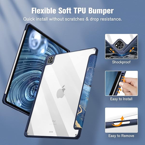 - Fintie Hybrid Slim Case for iPad Pro 12.9-inch 6th Generation 2022, [Built-in Pencil Holder] Shockproof Cover w/Clear Transparent Back Shell, Also Fit iPad Pro 12.9" 5th/4th/3rd Gen, Ocean Marble offers reliable performance and quality