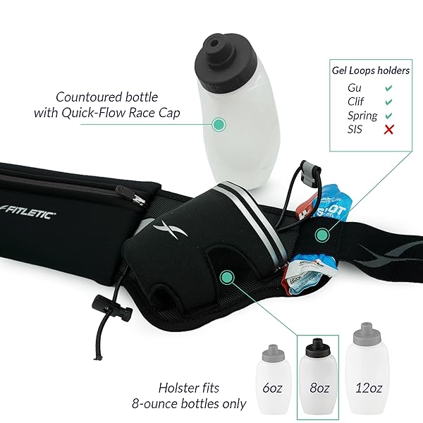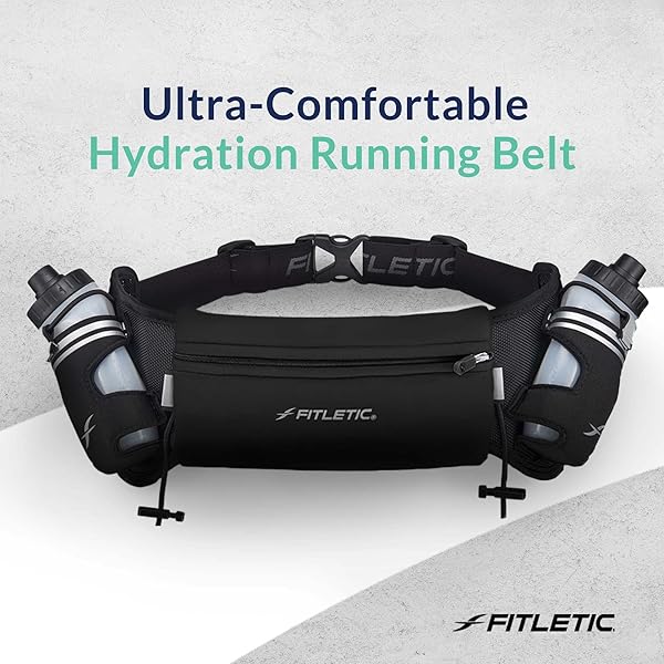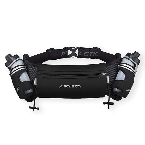 Fitletic Hydration Running Belt with Water Bottles for Men and Women Quick Flow Design Water Resistant Pouch Fits All Phones Hydra 16