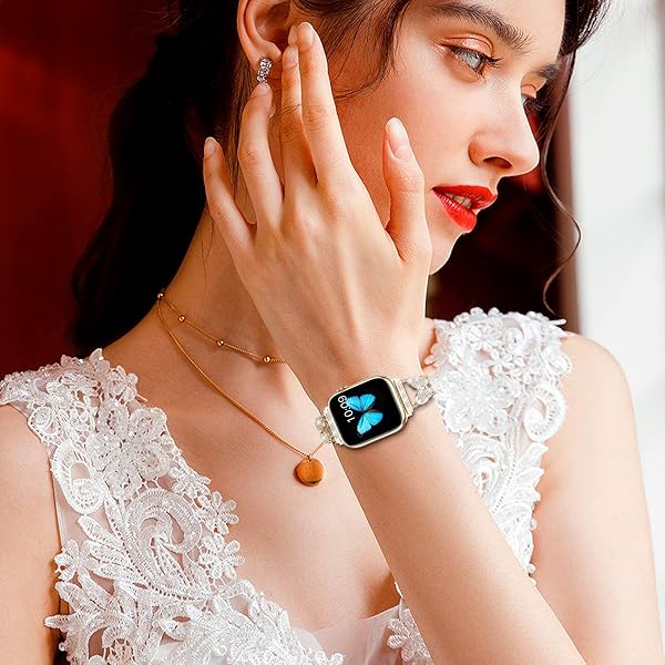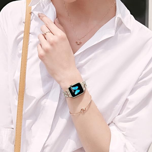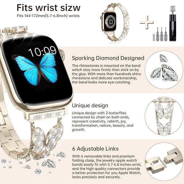 - Fitlink for Apple Watch Band 38mm 40mm 41mm, Bling Butterfly Jewelry Diamond Rhinestone Stainless Steel Metal Strap for Apple Watch Series 8 Series 7/6/5/4/3/2/1/SE/SE2/Ultra (Starlight, 38/40/41 mm) with reliable performance and quality- Jewelry Design for Your Apple Watch: The design of this Apple Watch band is inspired by a butterfly. Sparkling diamond design, reinterpret the grace and beauty of butterflies in flight. Which means hope and perfect. The Apple Watch Band made of p