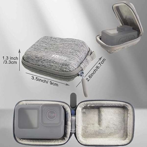 * FiTSTILL Grey Weaving Mini Carrying Case for Go Pro Hero 13/12/11/10/9/8/7/(2018)/6/5/4/3+/3 Black,Hard Shell Travel Storage Case for AKASO,Campark,YI Action Camera and More: wide applicastioncompatible with go pro hero 13/12/11/10/9/8/7/(2018)/6/5/4/3+/3 black,akaso,campark,yi action camera and more.(note:the case not applied to dji osmo action 2/3/4/5pro,ace pro/ace pro2.) * Zipper Design & Aluminum Carabiner360 smooth zipper design,allows it to be used with your Go Pro even with selfie