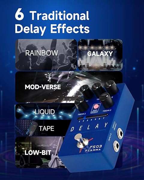 * FLAMMA FS03 Electric Guitar Delay Effects Pedal with Looper Stereo Digital Sound 6 Delay Effects Storable Preset Tap Tempo Trail On True Bypass for Pedal Boards: stereo delay6 traditional stereo delay effects: tape * Liquid * Rainbow * Galaxy * Mod-verse