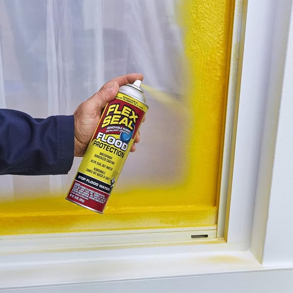 * Flex Seal Spray Flood Protection, 10 oz, 1-Pack, Waterproof Rubberized Coating, Removable, Use on Door Tracks, Seams, Sills, Small Openings, Corners, and Irregular Shapes and More: verified by ul for no water penetration through 1/8" gaps at depths up to 3 feet * For 14 days * Flood Protection Spray should ALWAYS be used in combination with our other Flood Protection Products * Flood Protection Spray can be used as a primer coating to hard-to-reach areas * Such as door tracks