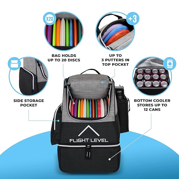 - Flight Level Disc Golf Backpack with Insulated Cooler | Frisbee Disc Golf Bag | Large Capacity up to 20 Discs (Gray) with reliable performance and quality- UP TO 20 DISC CAPACITY This backpack features a large main compartment capable of holding up to 20 discs, along with an upper zipper giving easy access to an elastic pouch for holding your favorite putters. Offers plenty of space to store your entire disc golf set.- 12 CAN INSULATED POCKET Spacious integrated cooler co