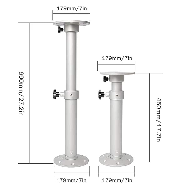 * Flylin Adjustable Table Pedestal Detachable Table Base Stand Leg Base Mount Frame 17.827.2 inch Aluminum Alloy Table Base Kit for RV Boat Yacht (1#): size top and bottom base diameter: 7inch/179mm * Maximum Height: 27.2inch/690mm * Minimum Height: 17.7inch/450mm * You Can Adjust The Height of The Pedestal Stand According to Your Own Needs to Meet The Needs of Different Occasions * And It Is Convenient To Carry