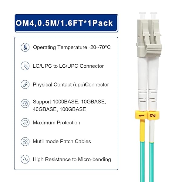 - FLYPROFiber- OM4 Fiber Patch Cable, 0.5M/1.6ft OM4 LC to LC Fiber Cable Multimode Duplex 50/125um LSZH 40GB/100GB Length Options: 0.2m-100m, 4pack with reliable performance and quality- 0.5M(1.6ft), OM4 LC-LC-4pack Fiber Optic Patch Cable Multimode 40/100Gb is designed for high density applications in gigabit ethernet, fiber channel, local area networks, data center, premise installation, wide area networks, commercial and so on, ideal for connecting 40G BIDI SR, 10G SR, QSFP+, SF