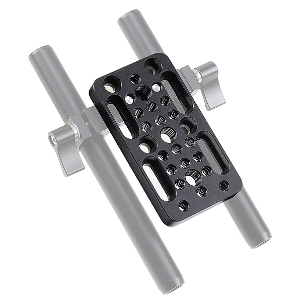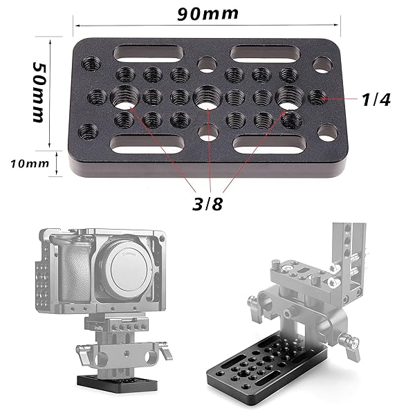 * FocusFoto Multi-Purpose Extension Switching Cheese Plate Camera Baseplate with 1/4"-20 & 3/8"-20 Thread Mounting for DSLR Camera Cage Rig Railblocks Dovetails Short Rods: features: * Made of Aluminum alloy * Machined by precision CNC and surface processed with hard anodized oxidation treatment * Lightweight * Small and exquisite
