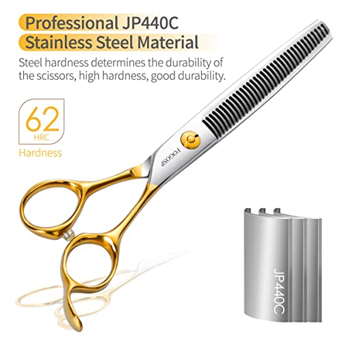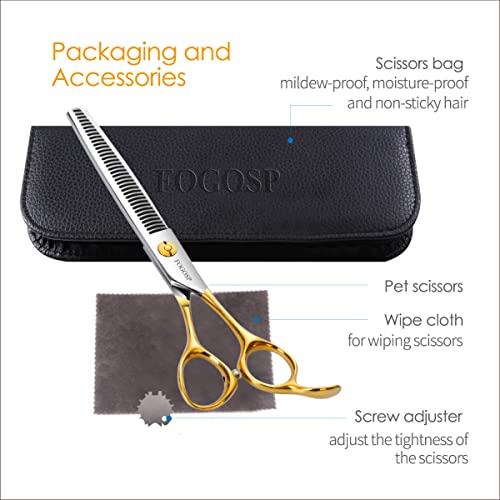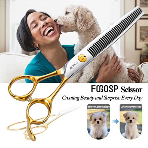 FOGOSP Dog Thinning Shears 36 Teeth 6.5 Inch Professional Grooming Scissors for Small Medium Dogs Right Groomer Gold Finish