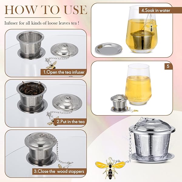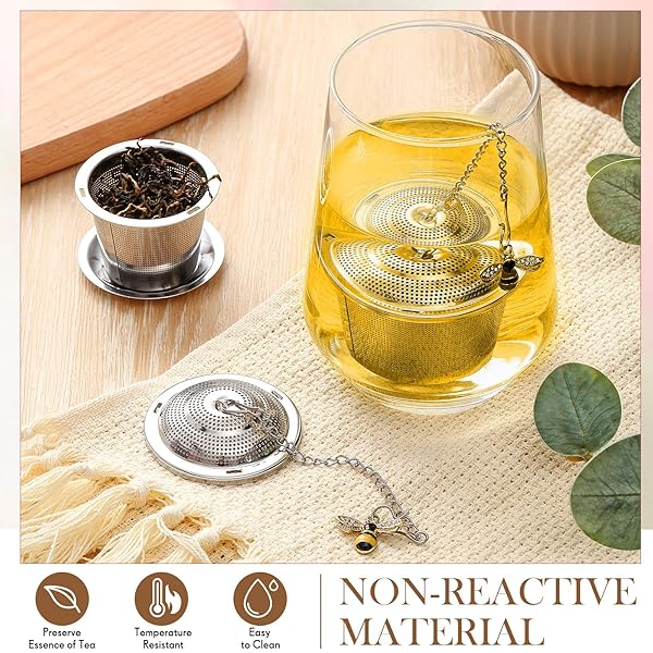 - FoldTier 3 Sets Tea Infusers Loose Tea, Stainless Steel Leaf Strainers Steepers with Drip Trays and Honey Bee Pendant Novelty Fine Mesh offers reliable performance and quality- Tea Lovers Sets: each package includes 3 sets of loose leaf tea infusers with 3 honey bee pendants; The extra tea steepers can be applied as backups or shared with family and friends, proving its brilliance as a gift