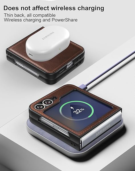 - Foluu for Samsung Galaxy Z Flip 6 5G Case, Galaxy Z Flip 6 Leather Case, PU Leather + Hard PC Shell Ultra Thin Slim Durable Protective Phone Case Cover for Samsung Galaxy Z Flip6 5G 2024 (Brown) offers reliable performance and quality- COMPATIBILITY with Samsung Galaxy Z Flip 6 5G 2024: Designed to fit perfectly with Samsung Galaxy Z Flip6 5G 2024 ONLY. Foluu Galaxy Z Flip 6 5G Flip Case fits perfect. Wireless Charging Compatible