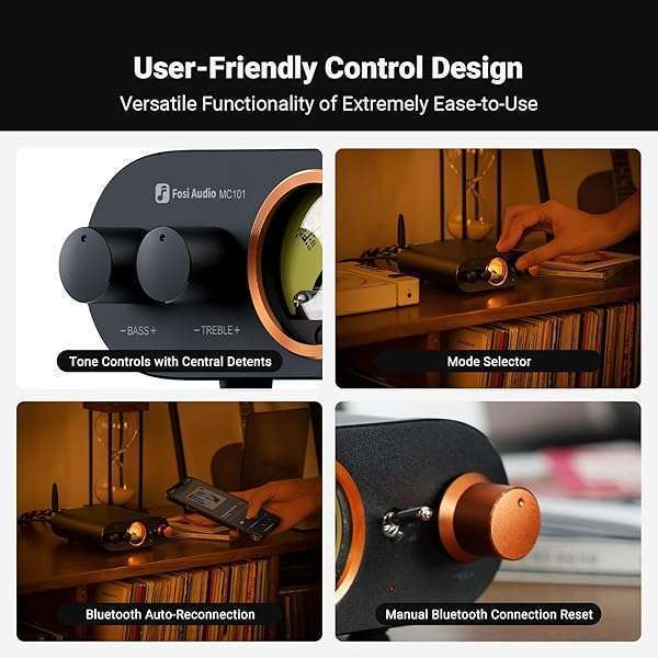 * Fosi Audio MC101 Bluetooth Stereo Amplifier Home Audio Component Mini Amp with VU Meter 2 Channel HiFi Receiver for Passive Speakers with Bass Treble Tone Control Vintage All Aluminum Alloy Build: mini vintage amp: crafted for music lovers * This amplifier harmoniously combines retro charm with contemporary design * Dive into the HiFi world with its superior sound quality and a powerful output of 200W * Experience a musical journey through time * Where nostalgia harmonizes with audio