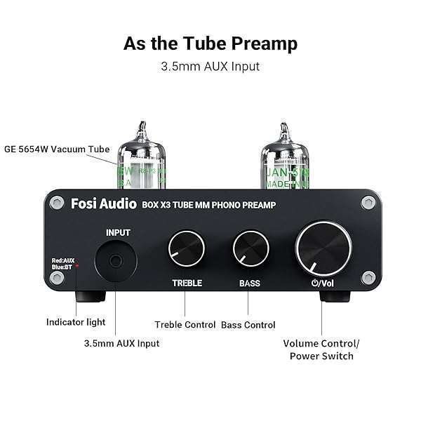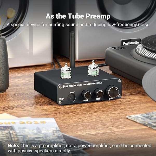 - Fosi Audio Box X3 Bluetooth 5.0 Phono Preamp Turntable Preamplifier 5725W Tube for MM Phonograph Mini Stereo Hi-Fi Pre-Amplifier for Home Audio Record Player Sound System: reliable performance and quality- The Fosi Audio BOX X3 is a state-of-the-art phono- The tube phono preamp improves the audio quality of- Upgrade your home audio setup with the BOX X3- Experience exceptional sound quality with the BOX X3
