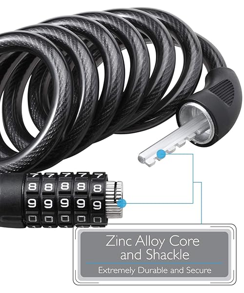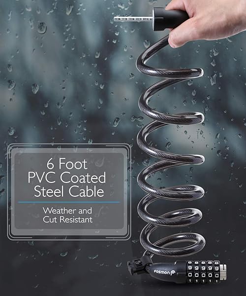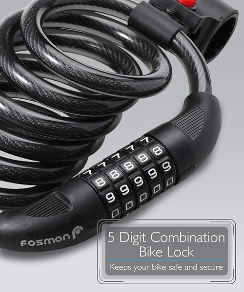 - Fosmon Bike Lock Cable (6 Feet), Heavy Duty 5-Digit Self Coiling Resettable Combination Code, Bicycle Chain Flexible Steel Security Cable Lock with Bike Mount Holder - Black offers reliable performance and quality