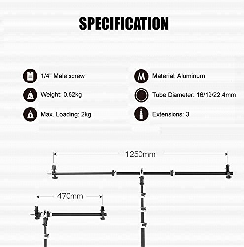 - Fotoconic Multi Functional Reflector Holder, Boom Arm, Background Crossbar (21"-49" / 53-125cm) with Solid Locking Metal Swivel Head Grip offers reliable performance and quality- Reflector holder extension is long enough and 1/4" interface design, can be fixed Monolight, Reflector board, flash frames, LED video light and more device