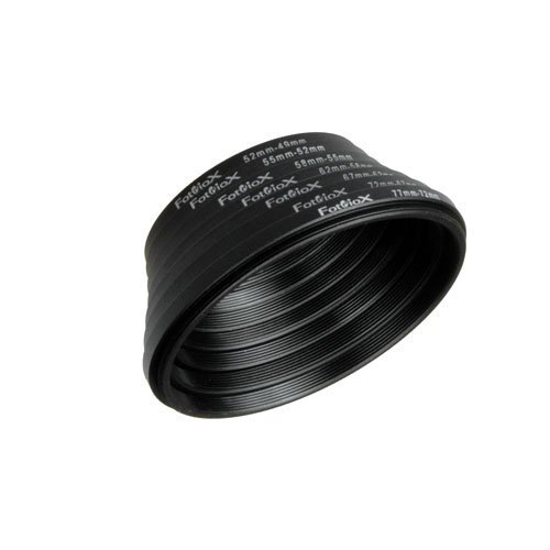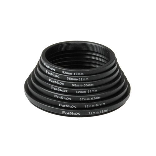 - Fotodiox 7 Metal Step Down Ring Set, Anodized Black Metal. 77-72mm, 72-67mm, 67-62mm, 62-58mm, 58-55mm, 55-52mm, 52-49mm provides reliable performance and quality- All Metal Design- Precise Thread- 0.75 pitch size- Anodized Black Finishing