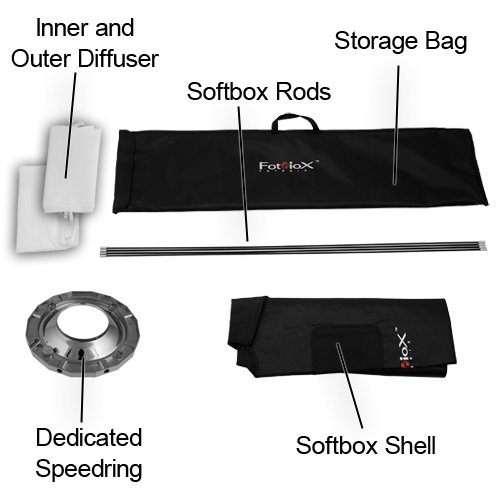 - Fotodiox Pro 24"x80" Softbox Plus Grid/Eggcrate for Studio Strobe/Flash with Soft Diffuser and Dedicated Speedring, for Balcar, White Lightning, Lighting, X800, X1600, X3200 Strobe Flash Light prov...- Pro grade, heat resistant reflective fabric with sealable venting for use with high power modeling lamp or continuous lighting- Heavy duty construction; features inner baffle, and outer diffusive cover for even light throw